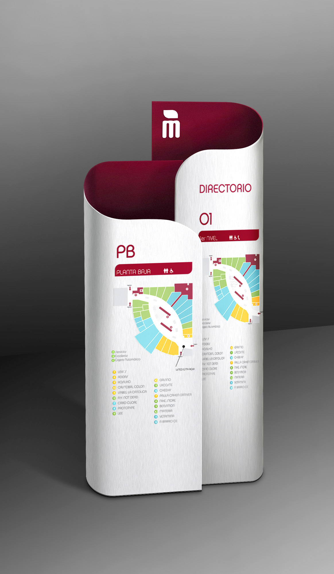 Wayfinding signs and totems concept for a mall. Buenos Aires, Argentina. 2008.